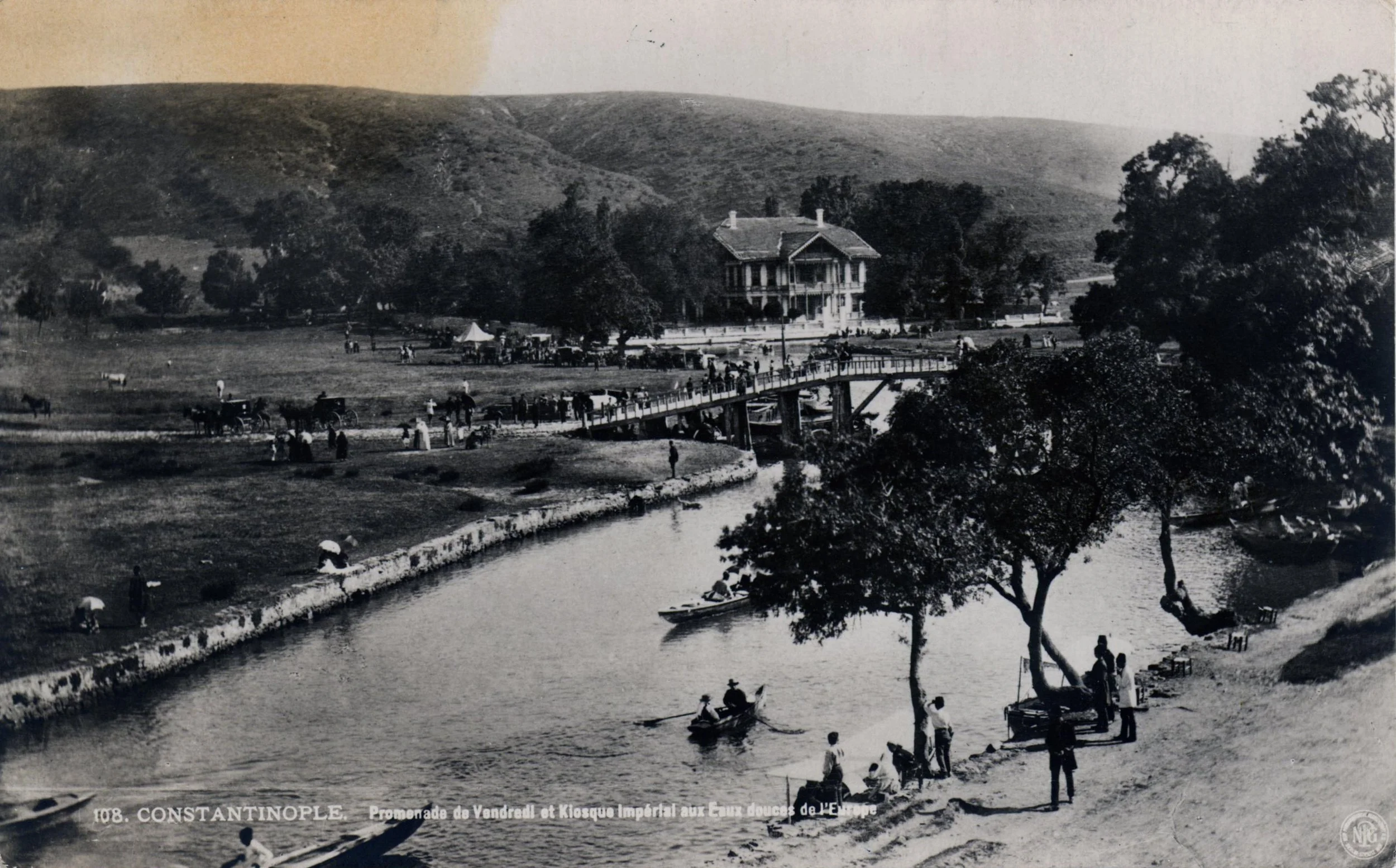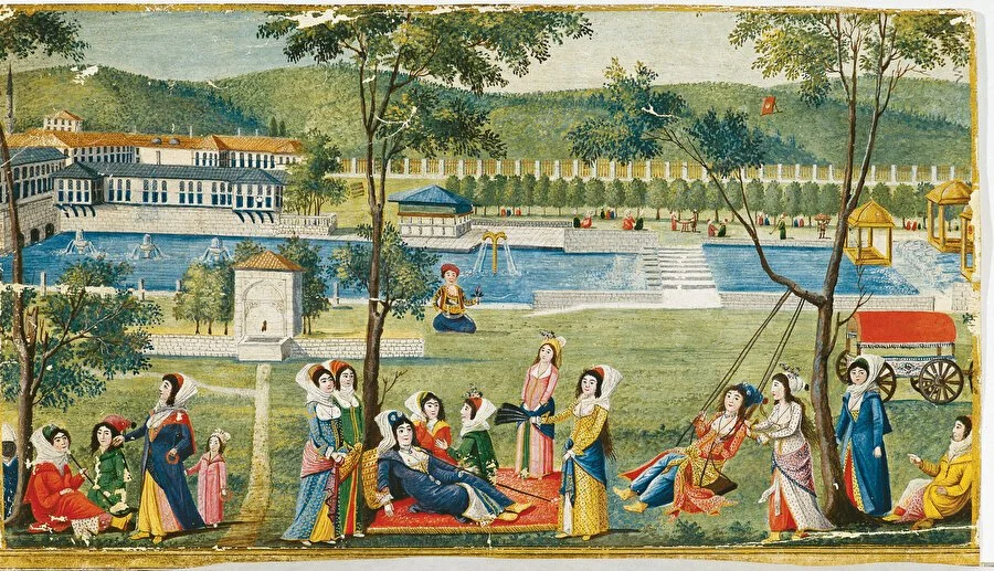 Although Bosporus meadows became fairly popular in the 19th century, no other pleasure garden could match Kağıthane’s fame and beauty. Called the “Sweet Waters” by the Franks and located at the tip of the Golden Horn, Kağıthane remained Istanbulites’ favorite pleasure garden from the late 16th century all the way to the Young Turk Revolution of 1908. According to author Balıkhane Nazırı Ali Rıza Bey, one of the reasons why Kağıthane was so popular was its proximity to the city. Its location indeed made Kağıthane very attractive, but according to Evliya Çelebi, it was the experience that made one fall in love with the Les Eaux Douces.