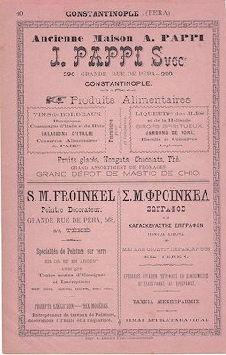 Right across the Café Flamme, on Grande Rue de Péra, no. 290, stood a corner store called Pappi’s. Famous for its Bordeaux wines, Dutch liquors, French champagnes, and Russian vodkas, Pappi’s was much more than a corner store. According to Ahmet Rasim, less-well-to-do Istanbulites would start the night at Pappi’s, drinking a few glasses of rakı or beer in quick succession before making their way to expensive establishments like the cafés chantant.